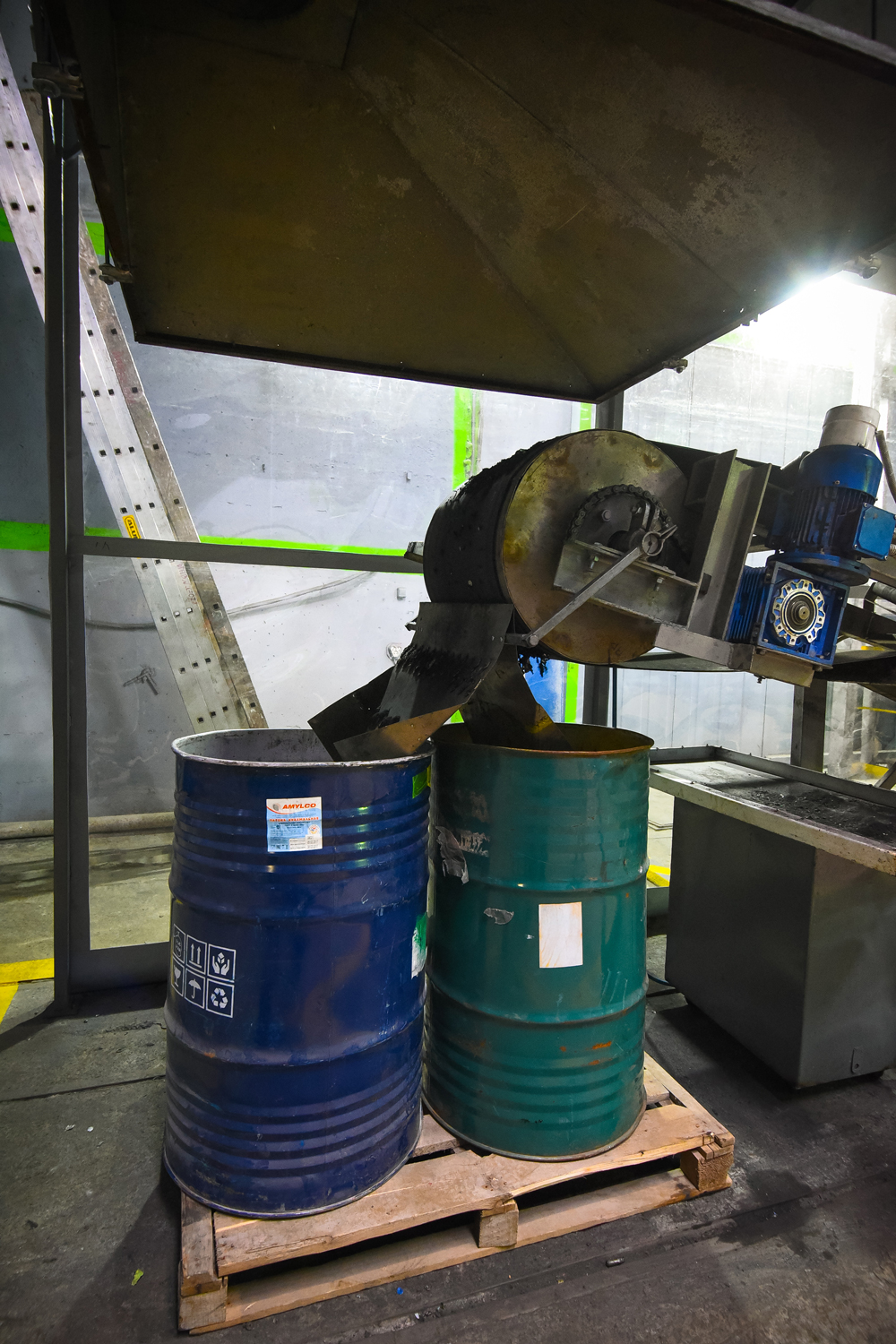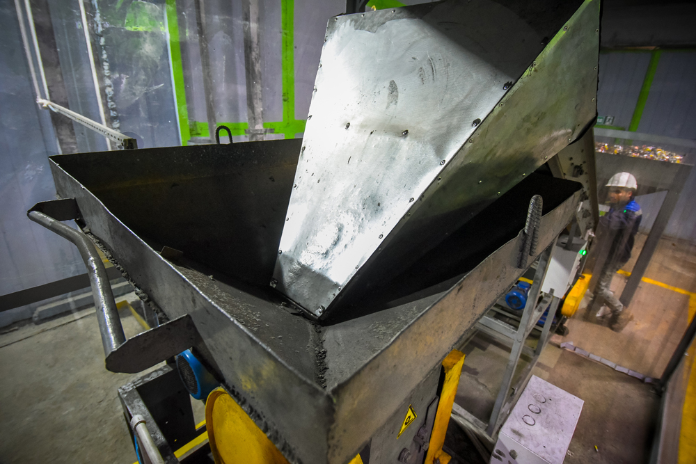 Измельченные батарейки отправляются в магнитный сепаратор для отделения железных оболочек.