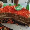 Особенность этого десерта заключается в его многослойной структуре: воздушный морковный бисквит чередуется с кремовой прослойкой на основе сливочного сыра и орехов. Благодаря оптимальному размеру, торт удобно подавать порционно, а его сбалансированный вкус понравится даже тем, кто не является поклонником морковной выпечки.