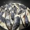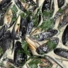 Для начала их раковины нужно тщательно промыть под струей холодной воды с применением жесткой щетки, чтобы удалить остатки биссуса и отростков при помощи которых мидии крепились к скалам. Затем морепродукт можно потушить на сковороде с оливковым маслом, белым вином, луком, сливками и сыром горгонзола. Готовить на большом огне в течение 5-10 минут до момента, когда их раковины начнут раскрываться. Подавайте с ломтиками свежего и ароматного багета.