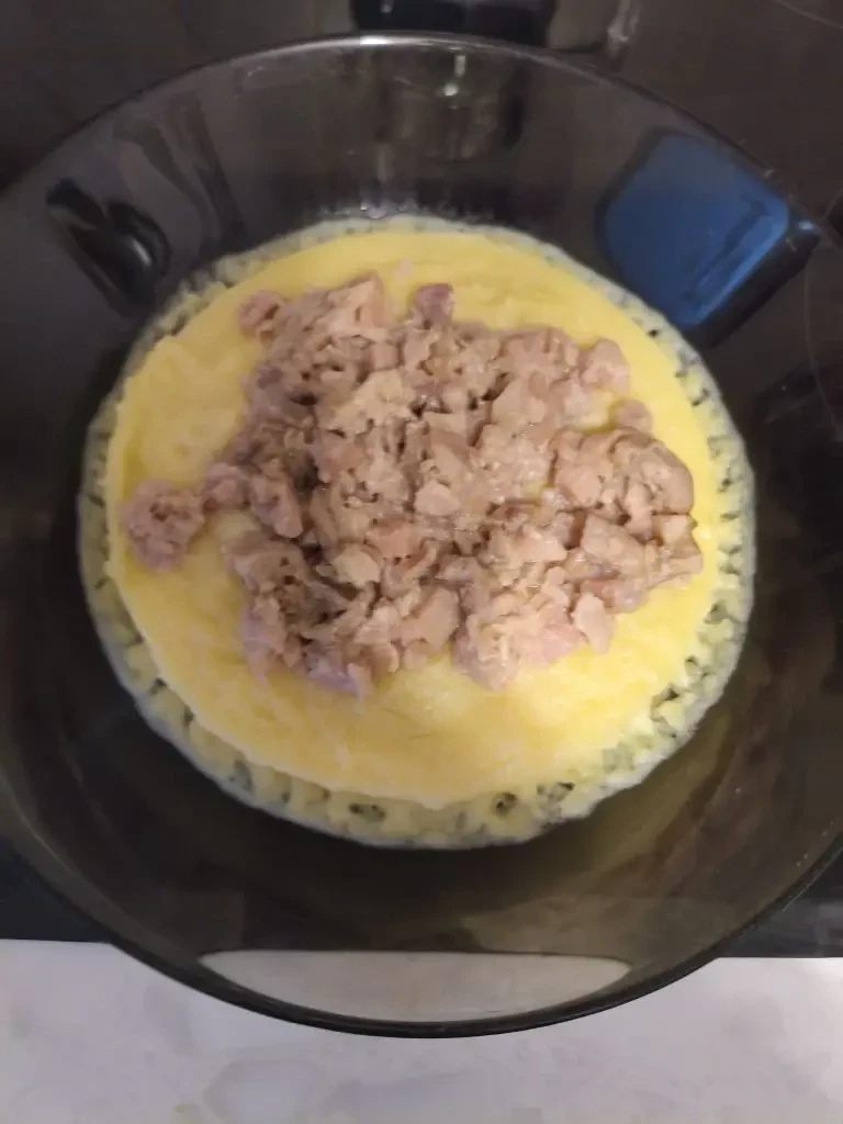 Перед подачей блюдо равномерно прогревают — на сковороде, в духовке или микроволновой печи, чтобы все компоненты соединились во вкусе и сохранили свою идеальную консистенцию. Едят его в горячем виде как самостоятельное блюдо — так ярче всего раскрываются и плотная текстура тунца, и бархатистость соуса, и мягкость пюре. Оно прекрасно сочетается с легким зеленым салатом или свежими овощами, которые освежают палитру вкуса. Можно дополнить трапезу кусочком ржаного или цельнозернового хлеба, чтобы собрать остатки ароматного соуса.