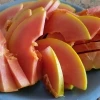 Свежая папайя — экзотический фрукт из жаркого Таиланда. Ее яркая, сочная мякоть имеет слегка рыхлую консистенцию и удивительный вкус. Он напоминает одновременно сладкую дыню, арбуз и клубнику. Чтобы помочь ему раскрыться в полной мере, рекомендуется полить фрукт соком лайма. Папайю нарезают ломтиками или разделяют надвое, а мякоть едят ложкой. Крупные черные семена в пищу не употребляют. Папайю добавляют в салаты, используют для приготовления смузи, коктейлей и сорбетов. Плоды содержат не только витамины и микроэлементы, но и особое вещество папаин. Он улучшает работу пищеварения и помогает расщеплению белков до легкоусвояемого состояния.