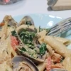 Вонголе выделяет немного сока, который имеет достаточно специфический привкус. Небольшую часть сока можно оставить на сковороде, а можно полностью слить. На вкус самого блюда это никак не повлияет. Далее ракушки заливают соусом из сливок и зелени, помидоров и чеснока, сливочного масла и базилика. Все ограничивается вашей фантазией. Еще минутка, и блюдо готово.
