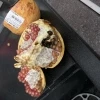 Для начала промойте гранат. Затем аккуратно срежьте верхушку, не повредив зерна. После этого вам будут видны белые прожилки, которые делят мякоть на несколько частей. Сделайте неглубокие надрезы сверху вниз по прожилкам. Поместите нож в центр плода и поверните вокруг своей оси. Гранат раскроется самостоятельно.