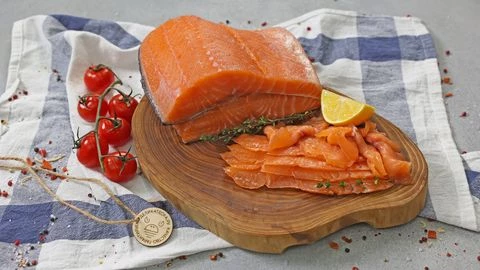 Филе семги атлантической было разделано способом Трим D. Он предполагает удаление хребта, реберной кости, спинного плавника, мелких костей и прихвостовой части, а также полную зачистку жира. Красная рыба — это не только деликатес, но и источник полезных веществ. В мясе семги содержится большое количество легкоусвояемого белка, микроэлементов, например, натрия, йода, цинка, магния, фосфора, калия, а также Омега-3 жирных кислот. Регулярное употребление красной рыбы оказывает положительное влияние на организм, укрепляет иммунную систему и снижает риск образования тромбов.