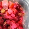 Салат Винегрет приготовлен по-домашнему, исключительно из натуральных ингредиентов. Для заправки используется подсолнечное масло. Калорийность готового блюда довольно низкая, а вот питательность высокая. Салат не только утолит голод, но и обеспечит организм пользой овощей. Порцию винегрета можно взять с собой на работу или поужинать им дома.
