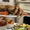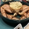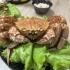 Краб свежемороженый. Его необходимо подвергнуть термической обработке. Морепродукт рекомендуется отварить. Краба нужно опустить в кипящую воду ногами вверх. Так ценная печень не сможет вытечь. Варите 10 минут с момента погружения в жидкость. Вода должна полностью закрывать тушку. Охладите краба до комнатной температуры. Удалите лапки с клешнями и снимите брюшко. Панцирь используйте как своеобразную посуду и подавайте деликатес прямо в нем. Мясо будет иметь белый цвет, а печень — светло-коричневый.
