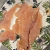Что хочется сказать - по красивому фото привозят какую-то некондицию - какие-то ошметки рыбы ватной консистенции , которая совершенно отличается от карточки товара. Попробовала - по вкусу это горбуша, а никак не лосось. И цвет на фото получается розовее - на самом деле рыба блеклово беловато-светло-розоватого цвета.