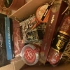 Медвежатина тушеная 325г, Паштет из индейки без консервантов халяль без свинины Setra 100г, Икра красная горбуши 170г, Колбаса из зайца сыровяленая 200г, Окорок Прошутто Крудо сыровяленый нарезка 70г, Колбаса сыровяленая из косули 200г