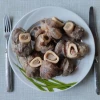 Оссобуко из северного оленя на кости представляет собой отруб из голени животного. Он распиливается на толстые шайбы, которые включают мясо и ценный костный мозг. Эта часть идеально подходит для длительного тушения, запекания в духовке, томления в горшочках и отваривания. В процессе приготовления мясо становится очень мягким, сочным, легко распадается на кусочки. Содержимое кости — это особый компонент оссобуко, который придает деликатесу изумительный аромат. Подавайте готовое блюдо с цедрой лимона, смешанной с чесноком и травами. Также можно украсить его ягодами.