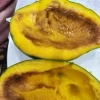 Немножко полежал, дозрел. Один идеальный, съели с удовольствием. Второй на разрезе после удаления косточки выглядит странно - часть мякоти коричневая. Можно нормальной наколупать, но немного. И по вкусу чуть кисловат
