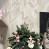 нобилис (лапник) хвойный, украшение ангел цветной, гном красный на прищепке красный, украшение сани белые, украшение лыжи коричневые, звезда с глиттером белая, хлопок госсипиум на вставках белый