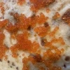 Цвет икры радужной форели, выращенной в аквакультуре, обычно варьируется от красно-оранжевого до оранжево-коричневого, а икринки являются мелкими или средними. Это естественные характеристики данного вида икры, которые могут незначительно отличаться от партии к партии в зависимости от корма и условий содержания рыбы.