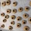 На смазанный пергамент выложить шарики из теста, в центр положить сушеную ягоду, придавить серединку. - 6